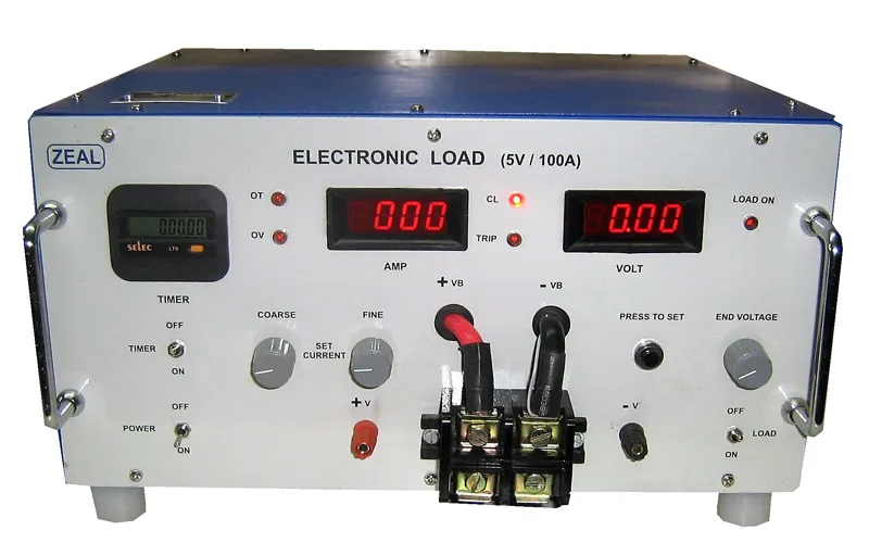 'Zeal' Electronic Load with adequate voltage/current resolution are ideal for testing of power sources, e.g. DC Regulated Power supplies, Batteries, SMPS, etc. They are good for finding out the regulation of power supplies and conducting heat run tests of power sources. They can also be used to assess the AH capacity of batteries.